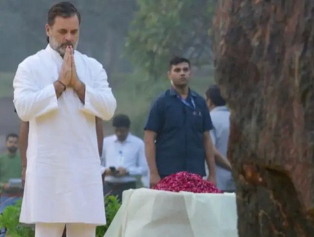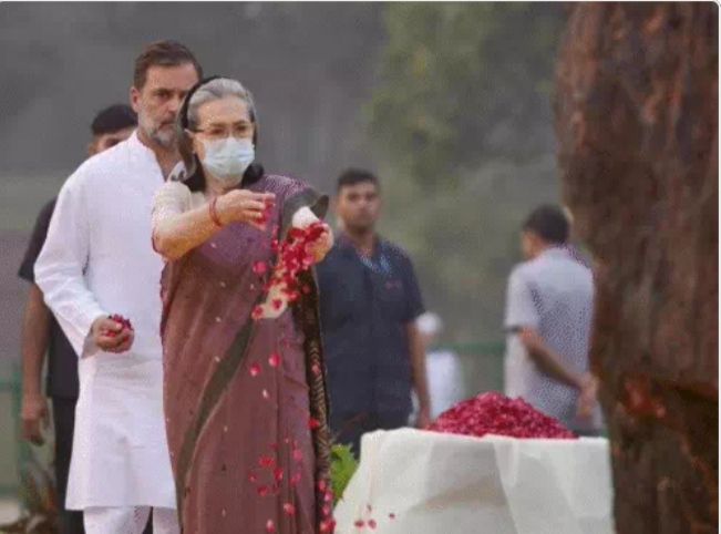 कांग्रेस अध्यक्ष मल्लिकार्जुन खड़गे, पूर्व अध्यक्ष सोनिया गांधी और राहुल गांधी ने दिल्ली स्थित शक्ति स्थल पर पहुंचकर पुष्पांजलि दी।